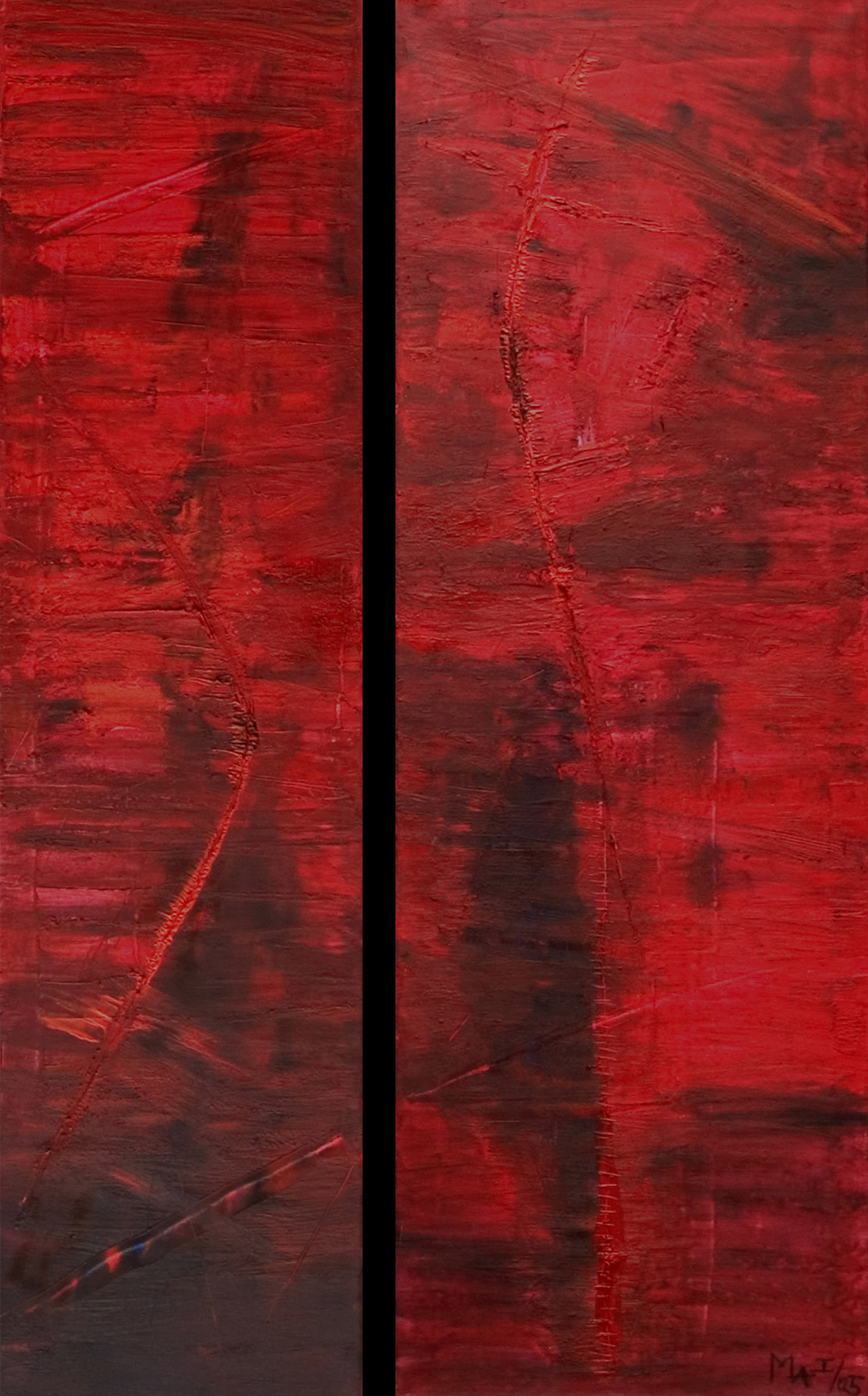 Malerei 2001 – 2025 Zumutbar 2003 – 2006 Down the Rabbit Hole – gesamt Mischtechnik auf Leinwand , 2003 70 x 150 cm Down by the Water Mischtechnik auf Leinwand , 2005 100 x 210 cm Out of the Blue Mischtechnik auf Leinwand , 2005 120 x 80 cm Not You Mischtechnik auf Leinwand , 2006 120 x 80 cm Lost Highway Mischtechnik auf Leinwand , 2004 100 x 100 cm No Exit Mischtechnik auf Leinwand , 2006 160 x 80 cm For E Mischtechnik auf Leinwand , 2004 120 x 70 cm Revolution Evolution Deconstruction Mischtechnik auf Leinwand , 2006 160 x 80 cm Micro Cuts 2008 – 2010 Destroying Violoence Öl auf Leinwand , 2009 150 x 250 cm Rebooting Fear Öl auf Leinwand , 2009 150 x 250 cm No Bleeding anymore Öl auf Leinwand , 2010 150 x 250 cm Wo es anfängt aufzuhören 2002 – 2005 Tribute to Ingeborg Pt I Mischtechnik auf Leinwand , 2002 100 x 210 cm Tribute to Ingeborg Pt II Mischtechnik auf Leinwand , 2002 210 x 100 cm Ohne Ziel Mischtechnik auf Leinwand , 2005 100 x 120 cm Ohne Hirn Mischtechnik auf Leinwand , 2004 100 x 100 cm Ohne Sie Mischtechnik auf Leinwand , 2005 120 x 70 cm Ohne Hirn Mischtechnik auf Leinwand , 2004 100 x 100 cm Ohne Text Mischtechnik auf Leinwand , 2004 80 x 80 cm Endless Mischtechnik auf Leinwand , 2005 140 x 190 cm Herzen im Staub 2002 – 2018 Herzen im Staub Mischtechnik auf Leinwand , 2008 100 x 200 cm Du wirst mich lieben Mischtechnik auf Leinwand , 2002 120 x 120 cm s-h-e Mischtechnik auf Leinwand , 2003 140 x 120 cm All Beauty Öl auf Leinwand , 2013 180 x 120 cm Postcardiotomie Öl auf Leinwand , 2003 100 x 100 cm La Familia Öl auf Leinwand , 2012 135 x 220 cm In die Mulde meiner Stummheit Mischtechnik auf Holz , 2018 50 x 100 cm So wie es war 2020 – 2024 Alternative Channels Öl auf Leinwand , 2021 100 x 200 cm Cov19 Rupture Öl auf Leinwand , 2020 100 x 100 cm No Joy in Repetition Öl auf Leinwand , 2021 100 x 100 cm Follow the Queen Öl auf Leinwand , 2022 80 x 80 cm Brain Fog Öl auf Leinwand , 2023 100 x 100 cm Discovering new Paths Öl auf Leinwand , 2024 100×100 Where is Your Heart Öl auf Leinwand , 2024 80 x 120 cm